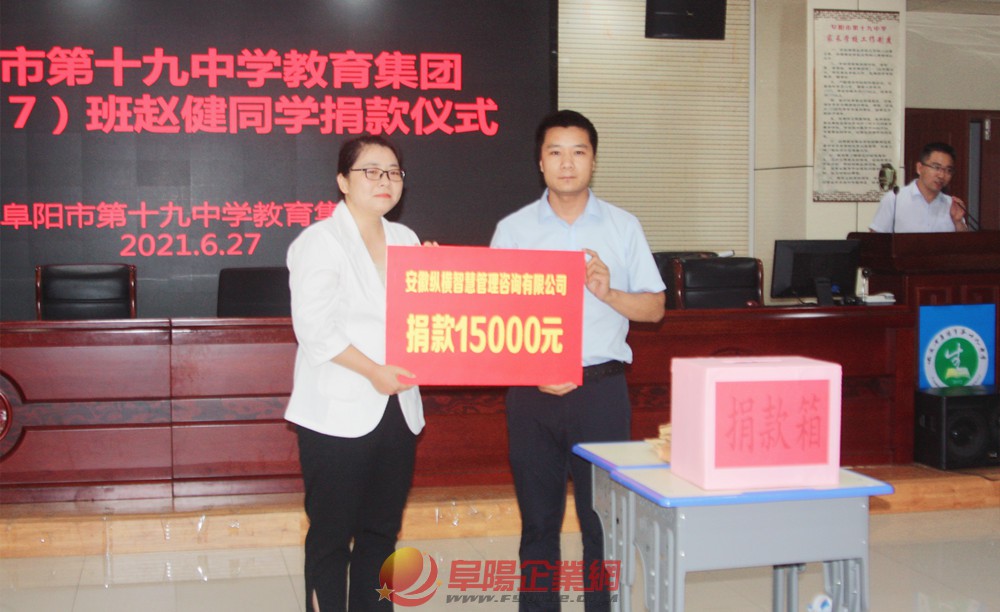 趙健是阜陽十九中九(7)班學(xué)生,5月31日,趙健因身體不適,到醫(yī)院檢查,被醫(yī)院確診為急性淋巴細(xì)胞白血病。當(dāng)醫(yī)生告知治療費(fèi)用至少需要50多萬時(shí),對于這個(gè)原本就不富裕的小家庭來說不啻于晴天霹靂。趙健的父母常年在外打工,此次為了給趙健籌措治療費(fèi)用,借遍了所有親朋好友,天天以淚洗面,已經(jīng)到了山窮水盡的地步。 阜陽十九中教育集團(tuán)領(lǐng)導(dǎo)得知這一情況后,立即號(hào)召全體師生為其捐款。學(xué)校黨總支、工會(huì)、團(tuán)委、學(xué)生處、各年級(jí)(組)第一時(shí)間發(fā)出了愛心捐款倡議書,學(xué)校領(lǐng)導(dǎo)班子帶頭進(jìn)行捐款,全校師生、員工、學(xué)生家長和社會(huì)愛心企業(yè)紛紛響應(yīng),積極捐款獻(xiàn)出一份愛心。 6月27日下午,愛心募捐現(xiàn)場,阜陽十九中教育集團(tuán)、學(xué)生家長、愛心企業(yè)慷慨解囊,為趙健同學(xué)共募善款245262.9元。 其中,安徽縱橫智慧管理咨詢有限公司捐款15000元,彰顯了愛心企業(yè)的責(zé)任擔(dān)當(dāng)和無限大愛。 據(jù)安徽縱橫智慧管理資詢有限公司總經(jīng)理湯德付介紹,該公司隸屬于北京縱橫智慧管理咨詢有限公司,是一家集國學(xué)教育培訓(xùn)、教育咨詢、企業(yè)策劃、圣賢商學(xué)院等為一體的集團(tuán)公司。 此次通過媒體了解到趙健的病情后,公司領(lǐng)導(dǎo)主動(dòng)和校方領(lǐng)導(dǎo)取得聯(lián)系,決定對趙健同學(xué)進(jìn)行愛心捐助。15000元,雖然錢數(shù)不多,但也算是公司為孩子盡一份綿薄之力。面對無情病魔,希望有更多的愛心企業(yè)和愛心人士能為趙健同學(xué)伸出援助之手。只要人人都獻(xiàn)出一點(diǎn)愛,世界將變成美好的人間! 費(fèi)之路 趙巖 文/攝 |