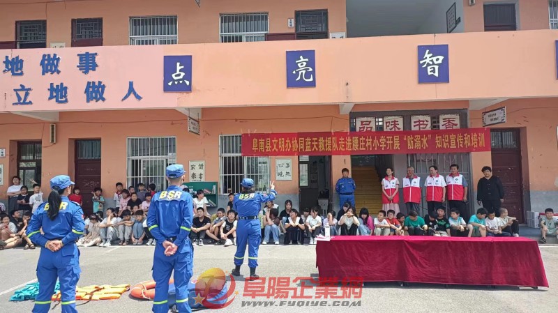 6月20日,阜陽市阜南縣稅務(wù)局關(guān)工委、阜南縣鹿城鎮(zhèn)關(guān)工委、阜南縣藍(lán)天救援隊、皖寶酒廠關(guān)工委關(guān)工“五老”一行走進(jìn)阜南腰莊小學(xué),開展“ 預(yù)防溺水 關(guān)愛生命”知識宣傳進(jìn)校園活動。(田永濤 王其鳳 文/攝) |