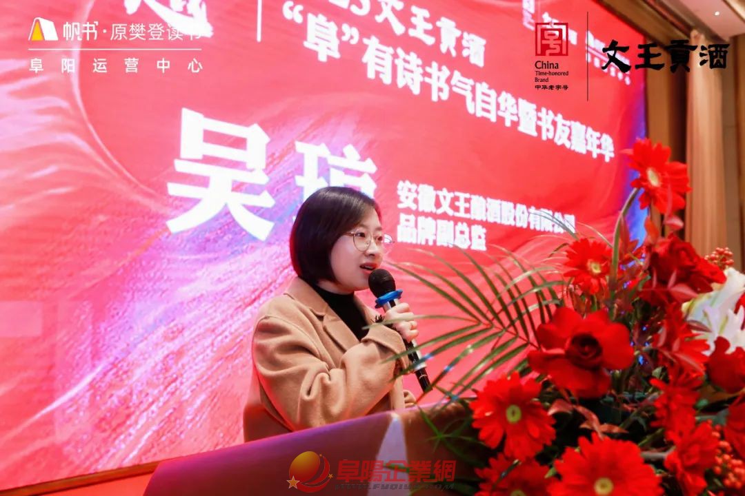 時間總在不經(jīng)意間悄悄流逝 新的一年悄無聲息地到來 站在歲末回望過去 2024年有太多的感動和故事 站在年初展望未來 2025年有更多的期望與夢想 在這辭舊迎新之際 我們再次齊聚一堂 共享閱讀之樂 文王貢酒 帆書第七屆“阜”有詩書氣自華 暨書友嘉年華活動 本次年會以 “閱讀的力量”為主題 五位嘉賓采用演講的方式 為書友們帶來全方位、有深度 有溫度的內(nèi)容分享 也為大家?guī)硪粓?/span> 火花四溢的知識盛宴 不僅是對過去一年閱讀旅程的總結(jié) 更是對未來書香之路的美好期許 下午3:00分 伴隨著嘉賓、書友簽到入場 在主持人的開場下 活動正式拉開序幕 隨著音樂的結(jié)束 現(xiàn)場響起了熱烈的掌聲 接著安徽文王釀酒股份有限公司 品牌部副總監(jiān)吳瓊女士 為本次活動致詞: 今年 是我們與帆書“阜有詩書氣自華”活動 攜手共進的第三載 人生如海 好書是帆 這份持久的合作 源于我們對阜城文化盛宴的 共同打造與執(zhí)著追求 愿我們在書香與酒香的交織中 共同開啟一段嶄新的文化之旅 攜手迎接更加美好的明天